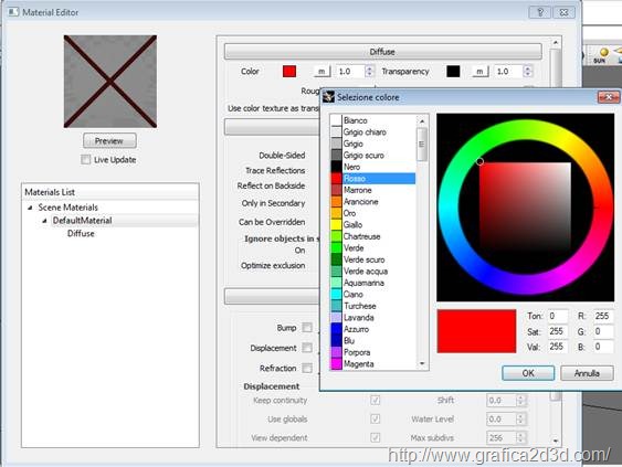 Proviamo a dare un colore al layer diffuse cliccando su color nel layer diffuse e dando un colore