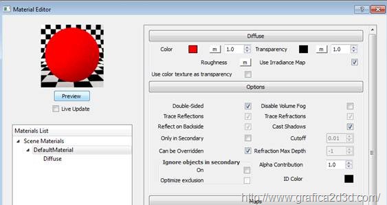 Un materiale di vray è composto di canali che possono essere presenti o meno a secondo dell’effetto che vogliamo dare al materiale, un materiale standard ha di default il canale DIFFUSE che è il canale che regola l’aspetto esteriore del materiale, come vedremo possiamo impostare in questo canale un colore o una texture