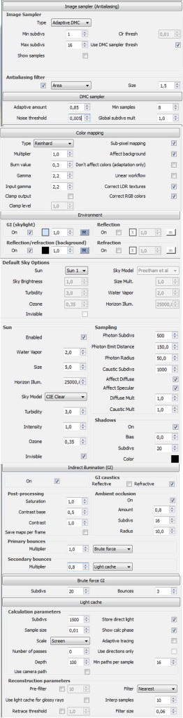 Posto alcuni screen della scena ed i principali settaggi utilizzati