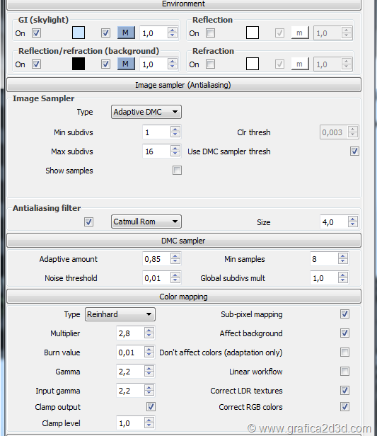 settaggi environment – antialiasing – DMC sample